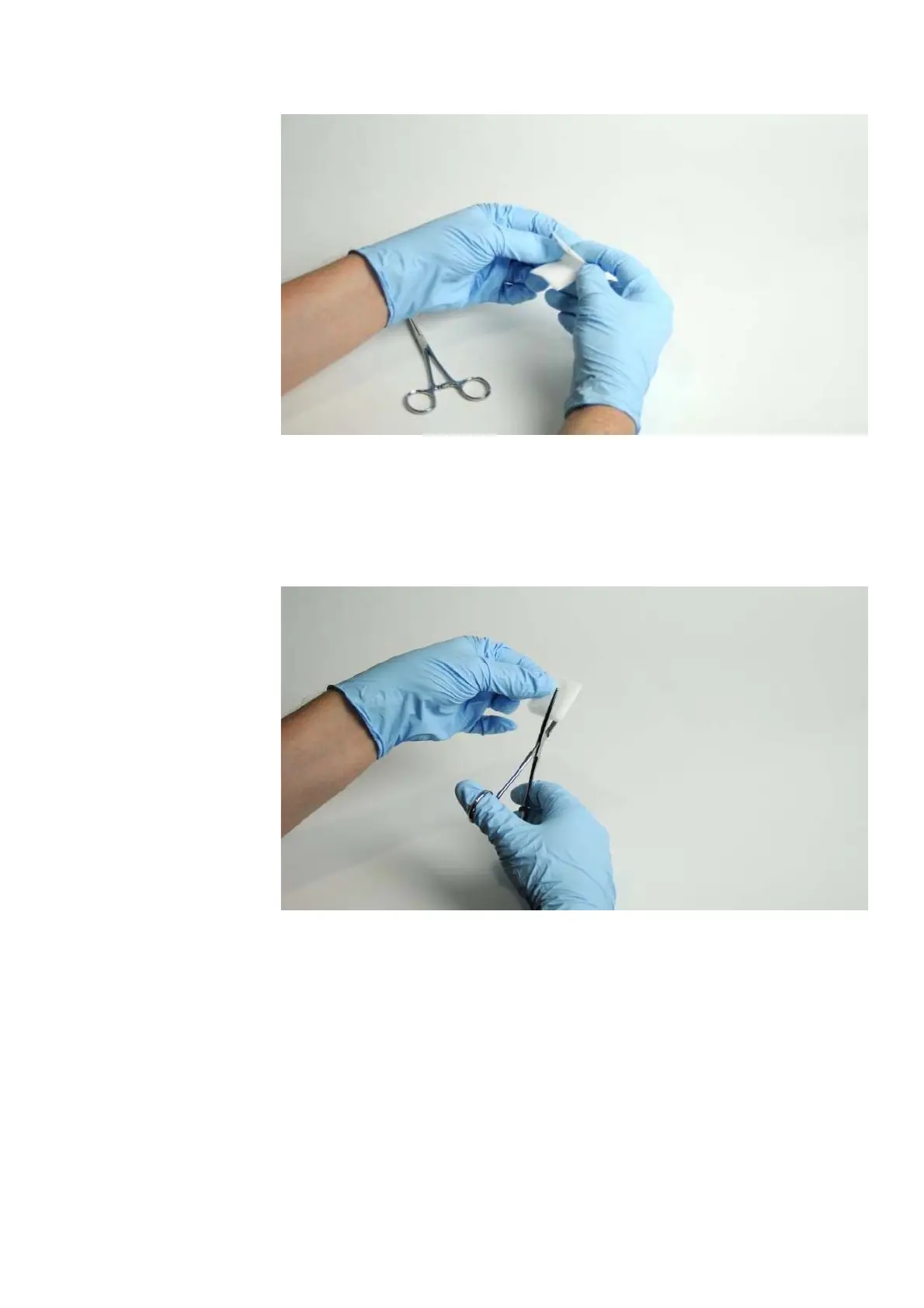 3. Use the forceps to fix the cleaning pad as shown in picture. Leave at least