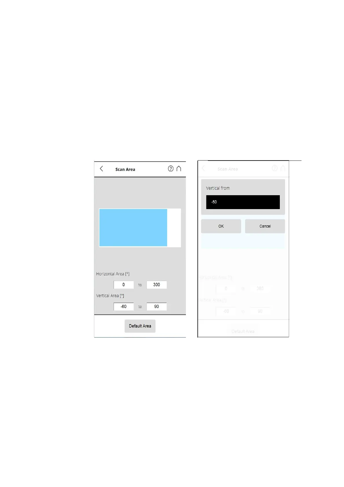 Vertical area - The size of the vertical scan area in degrees. Tap the fields to