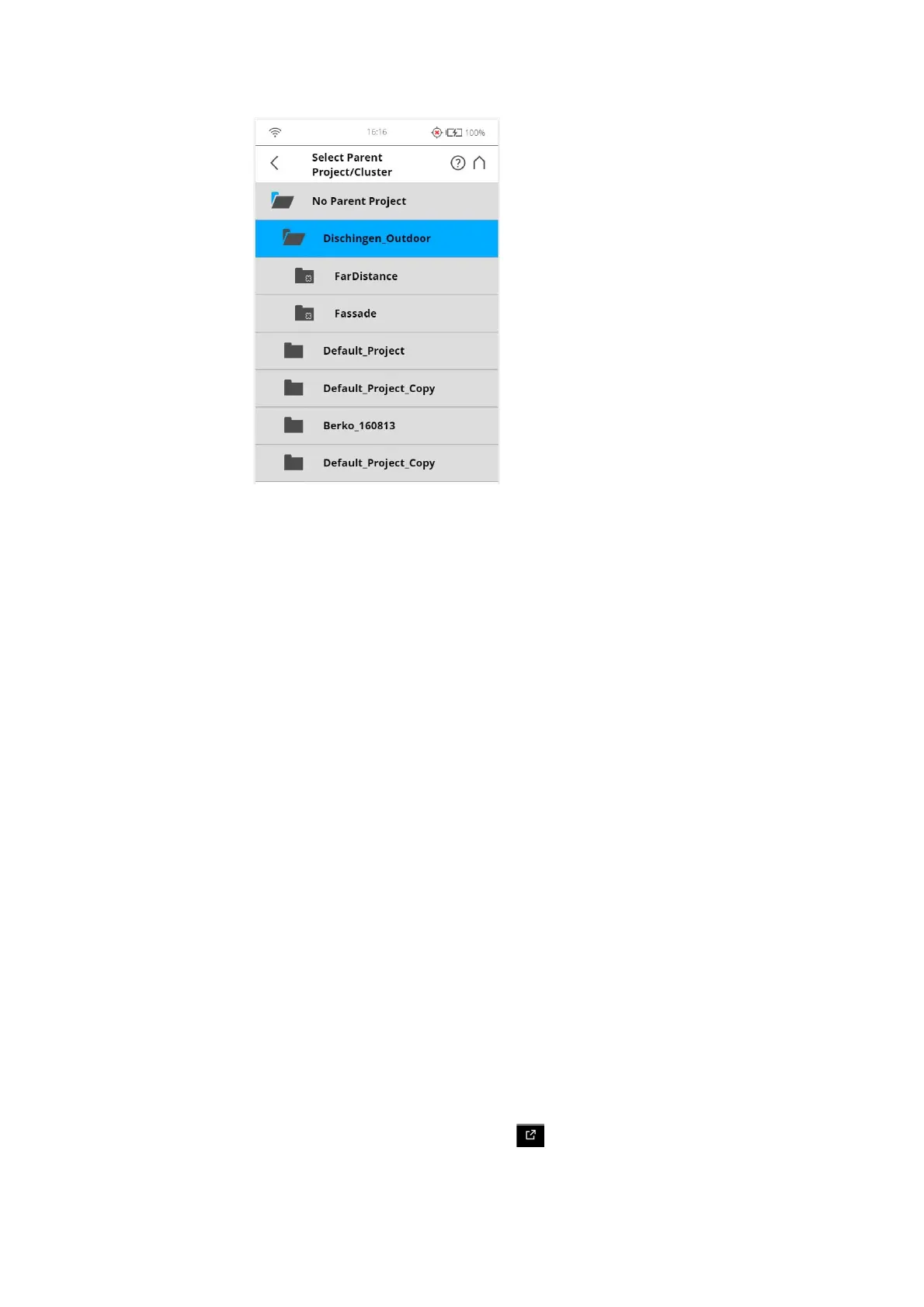 parent project/cluster. Tap on a button to select the parent project/cluster. The
