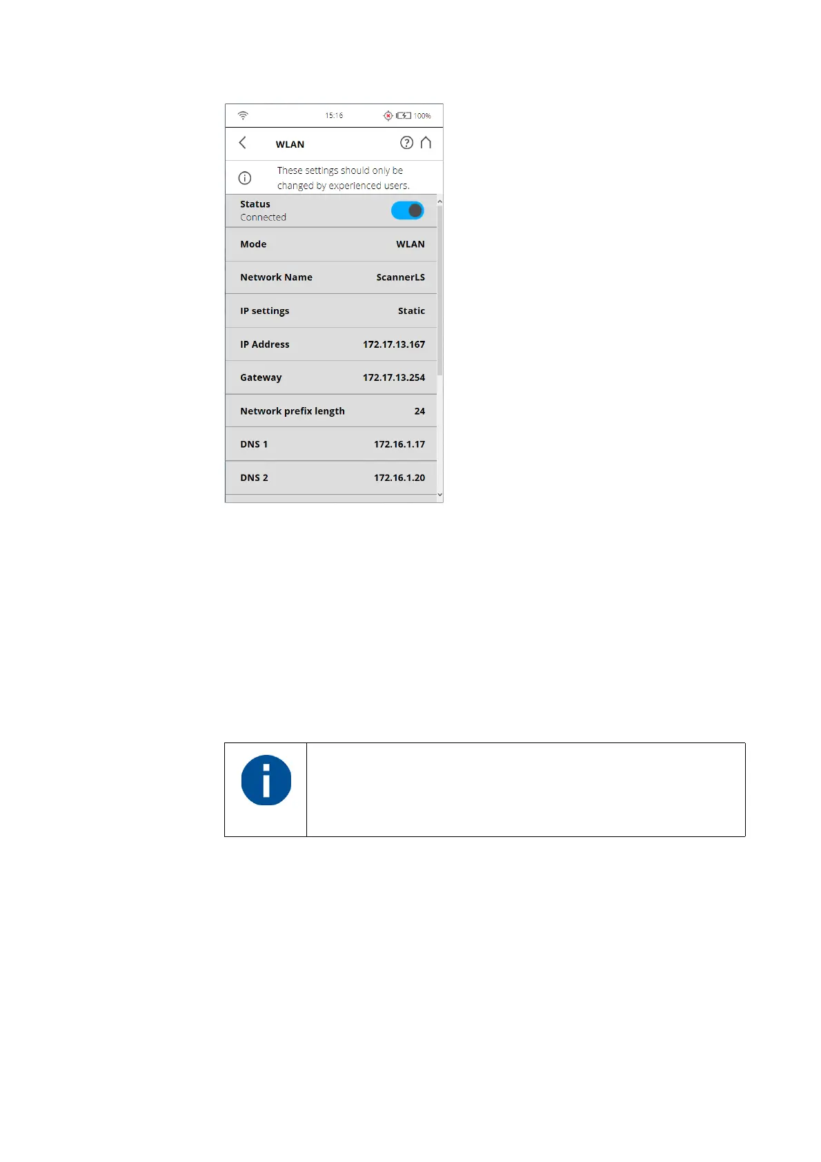 Note that changes to the WLAN settings are only possible if WLAN is turned