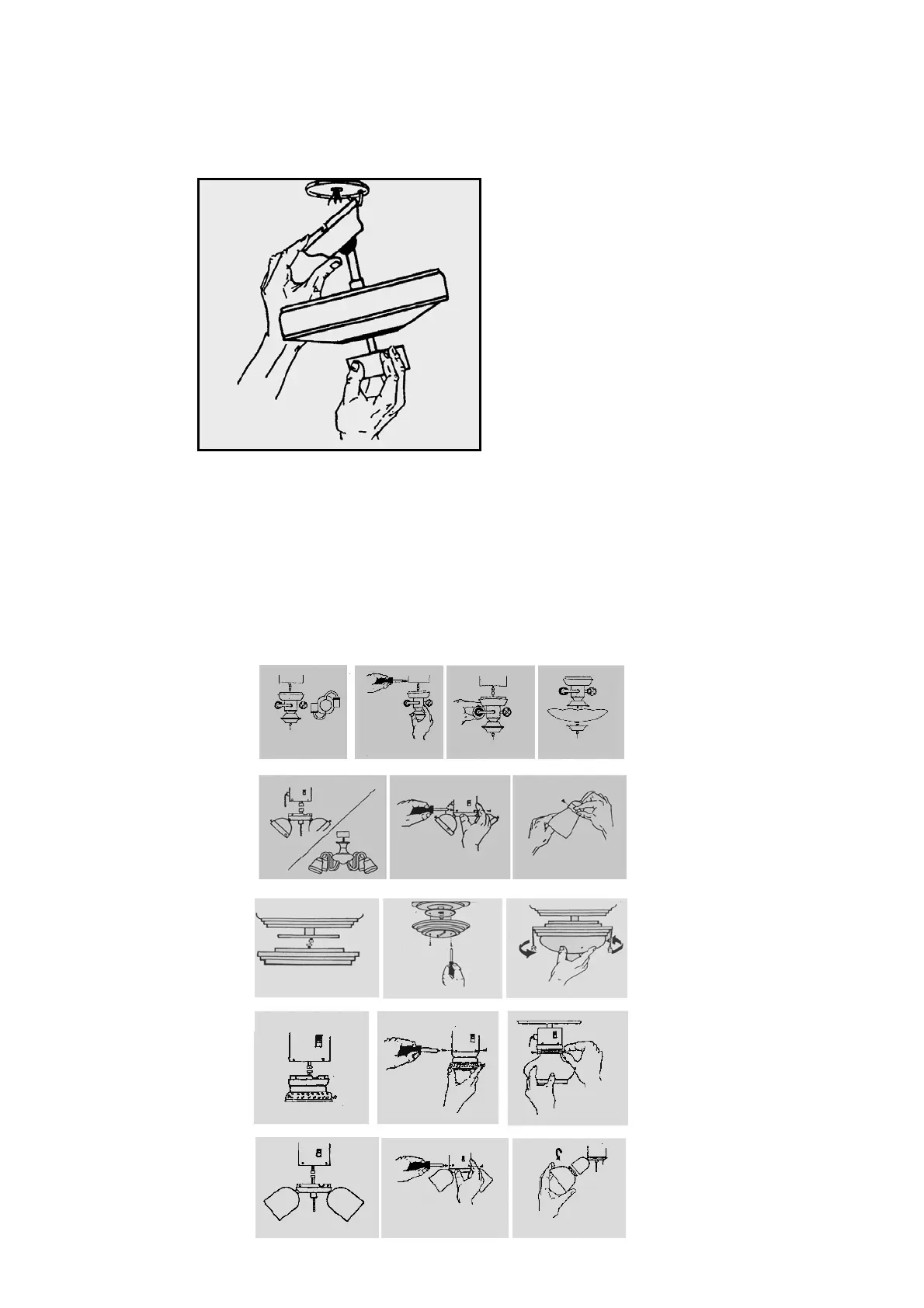2.2. Cuelgue el ensamblaje del ventilador en el gancho que hay en la placa de montaje del techo como