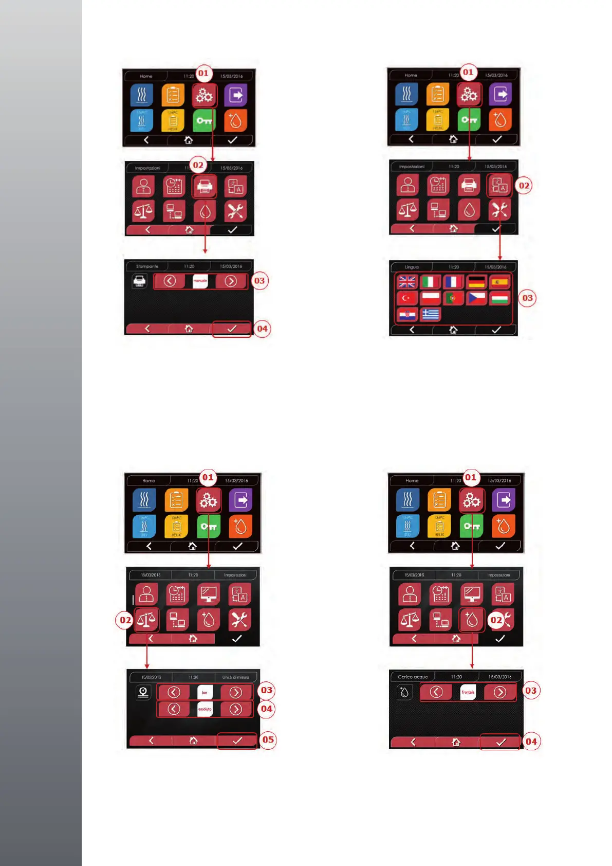 4.8.5 Impostazioni unità di misura 4.8.6 Impostazioni acqua