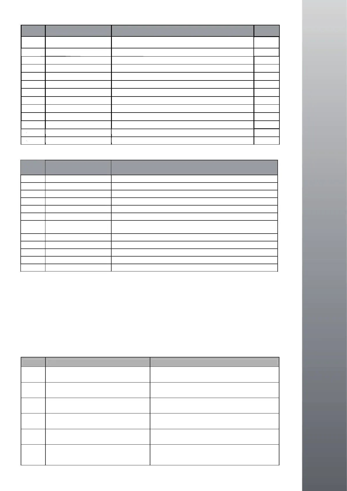 Code Possible cause Possible solution