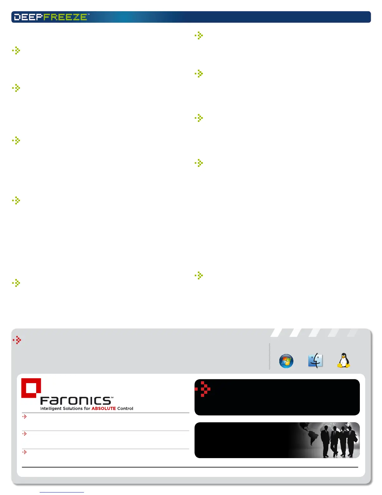 © 1999 - 2010 Faronics Corporation. All rights reserved. Faronics, Anti-Executable, Deep Freeze, Faronics Insight, Faronics Power Save, Faronics System Profiler and WINSelect are trademarks and/or registered trademarks of