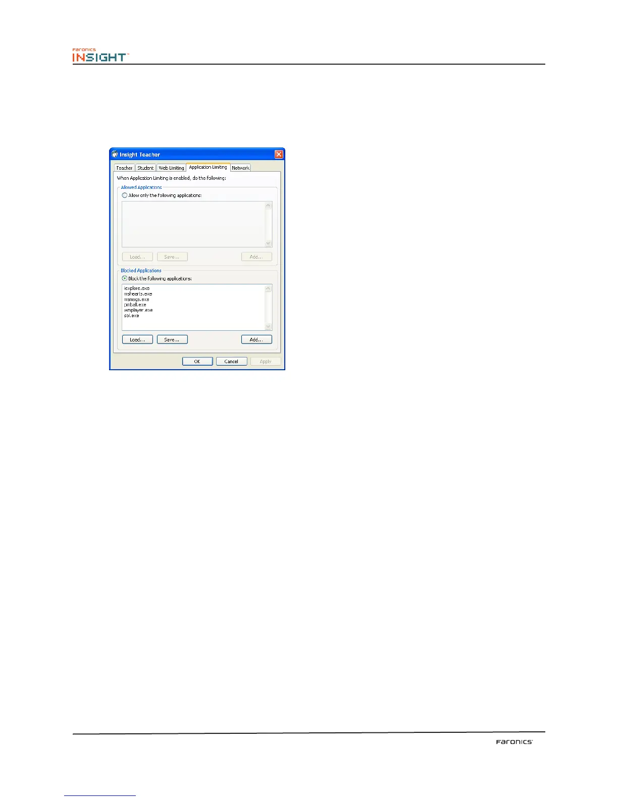 Teachers can save and load allowed or blocked application lists.