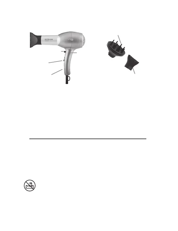 containers or basins filled with water. Do not use appliance