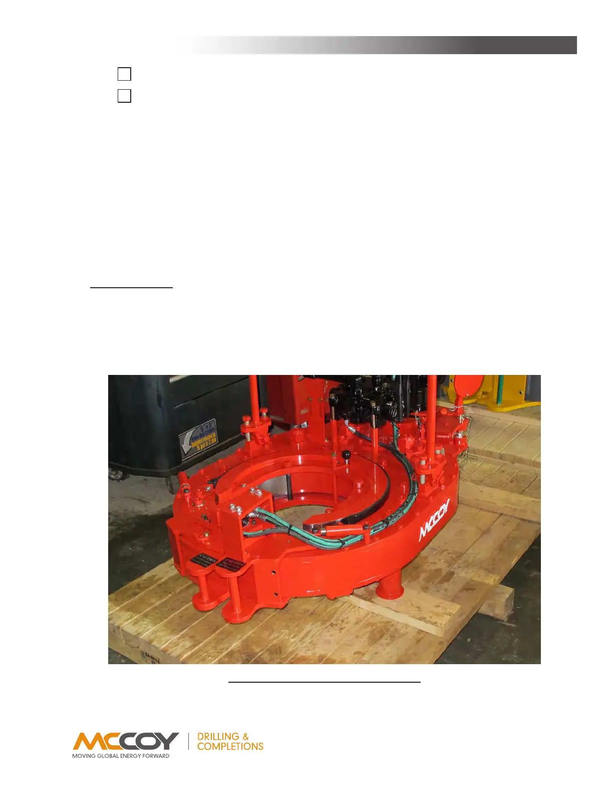 2. Placetheequipmentonasturdypalletconstructedof4”x4”cross-membersand2”x4”flooring.McCoyrecommendsplacing