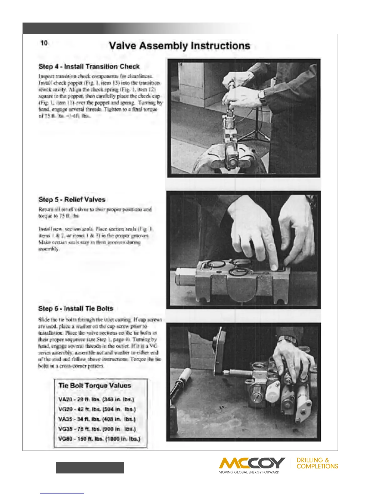 Farr KT5500 - Install Tie Bolts; Install Transition Check; Relief Valves; Tie Bolt Torque Values