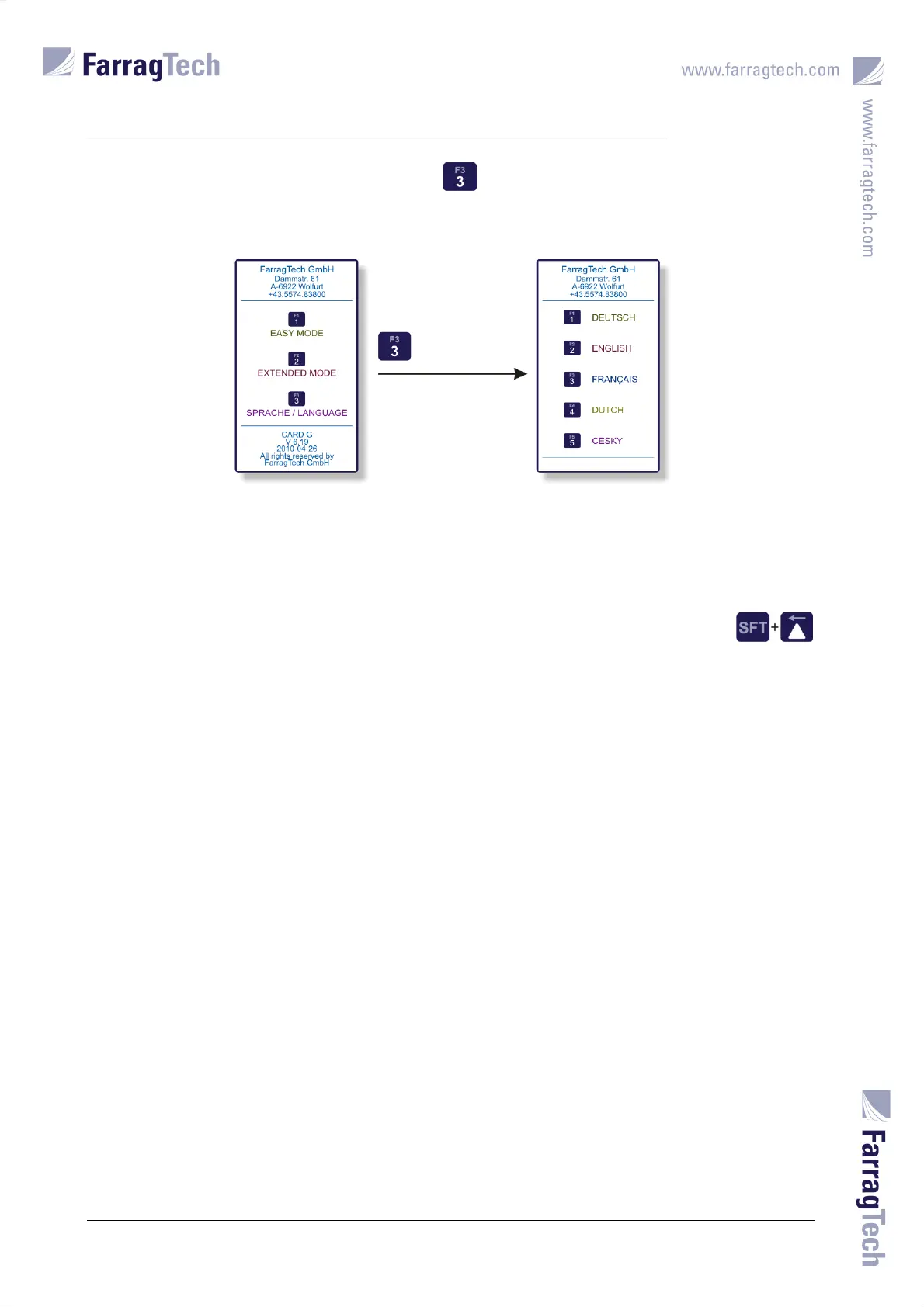 The LANGUAGE MENU appears when the key is pressed. The desired language can be