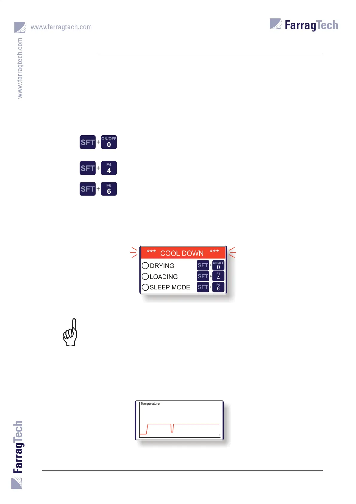 Drying temperature is traced to a graphic chart in the lower part of the display. It illustrates the