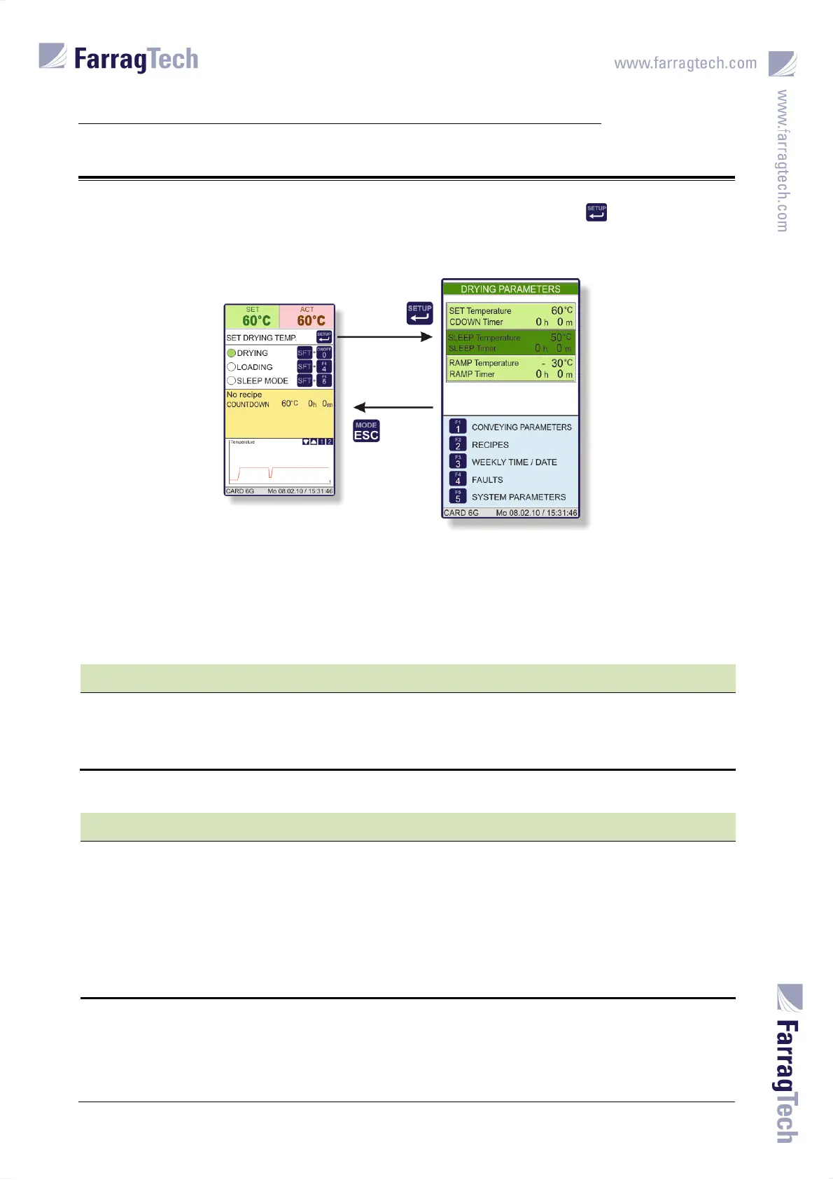 All further input screens can be attained from the screen with the DRYING PARAMETERS by using