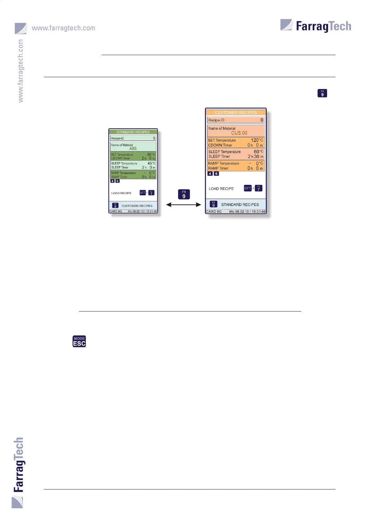 The CUSTOMER RECIPES are attained from the screen with the STANDARD RECIPES with the key .