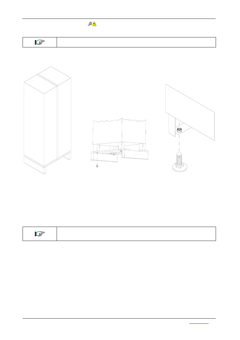 • Screw up the feet into their housings on the bottom of the machine. Adjust the feet with a leveller to have