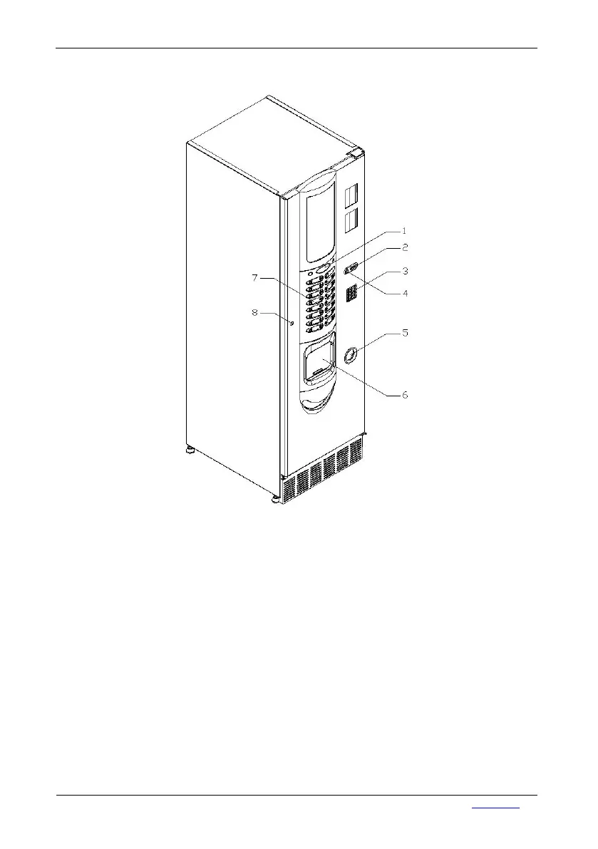 5 Coin return cup: is located on the lower part of the machine; the customer collects change from this
