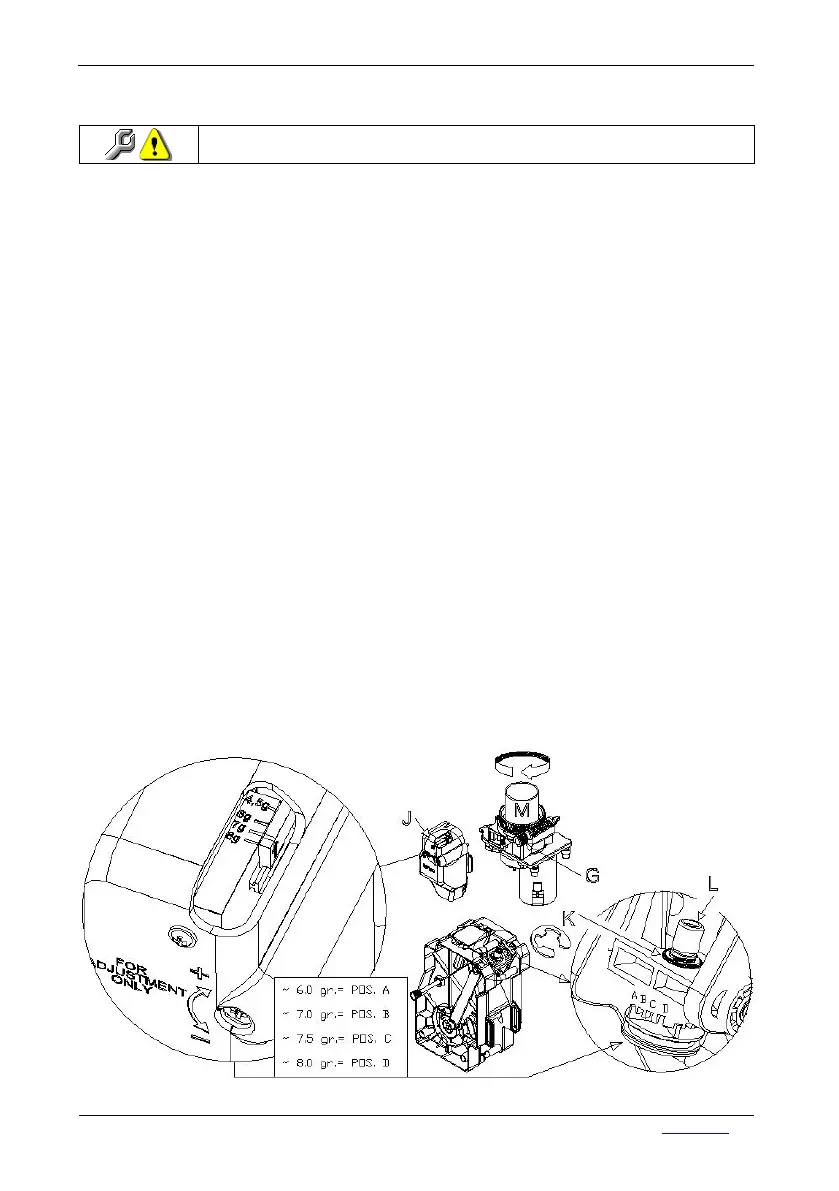 grams according to the position of the volumetric canister (det.J). To check the weight of the dose, remove
