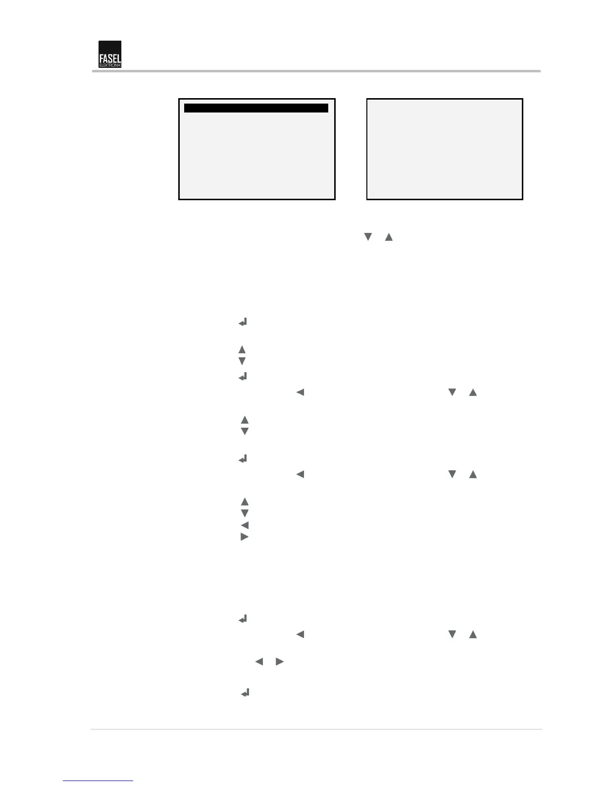 9. Exit the menu using the key or select the next line with the or key.