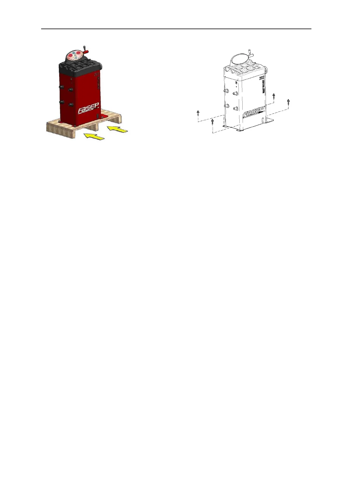 Per facilitare il trasporto è fornita in imballi dotati di pallets. Per trasportare la macchina fino al punto dove sarà installata