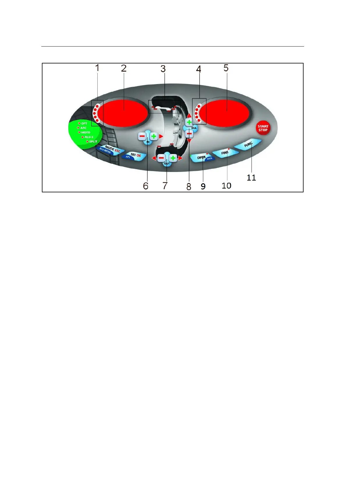<START-STOP>: ........................................................ Starts-stops wheel spinning.