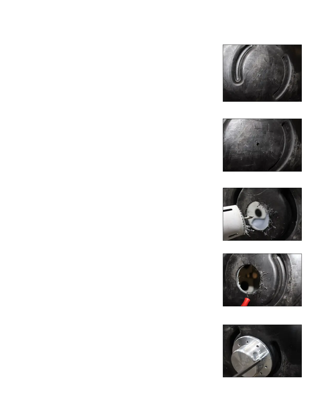 E. Place sump (SP-5500) into place, using 1 of the 10 mounting holes in the