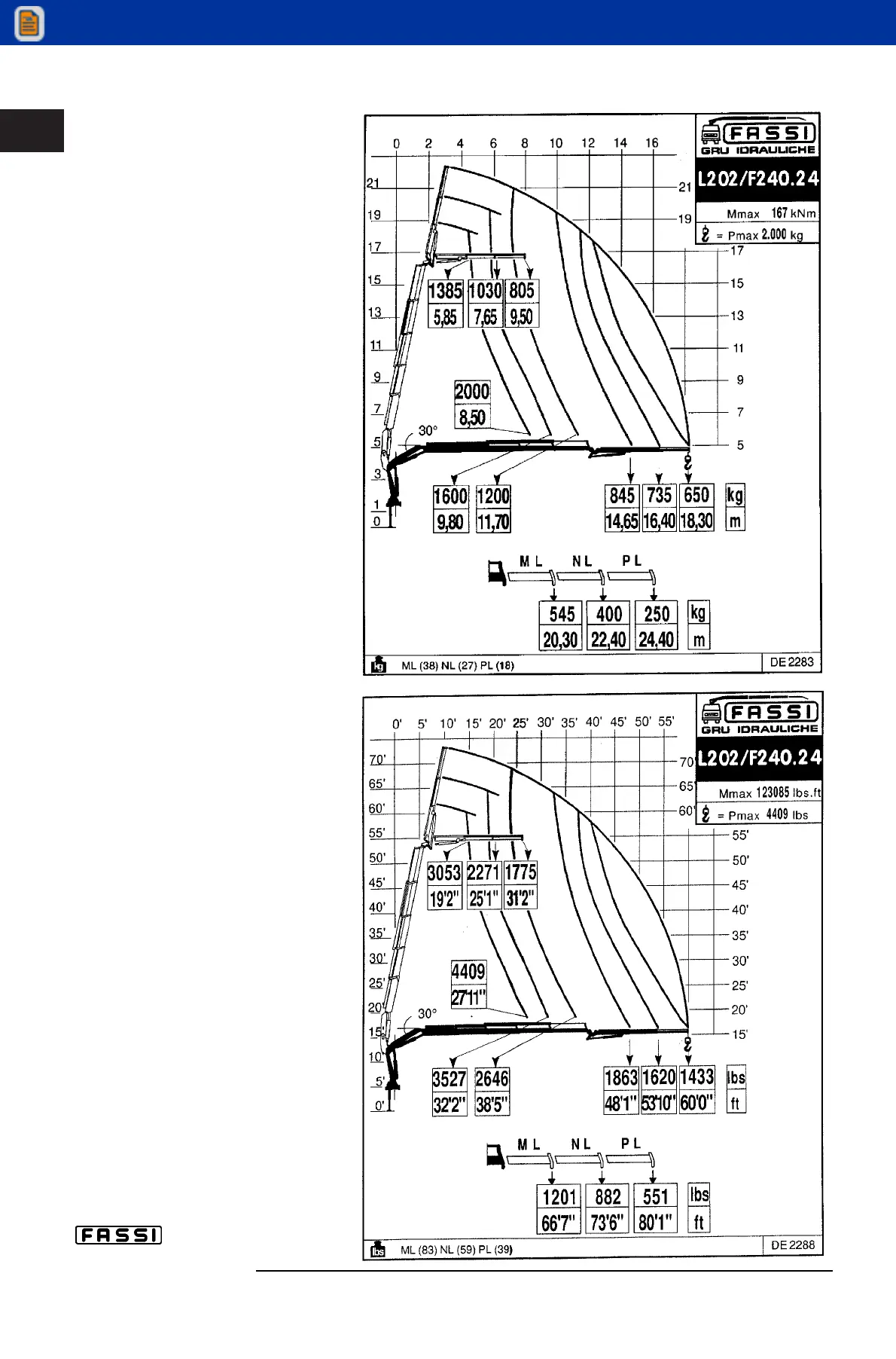 Fassi F 240.24 - Manual Extension L202 Capacity; Hydraulic Jib L202;F240.24 Capacity