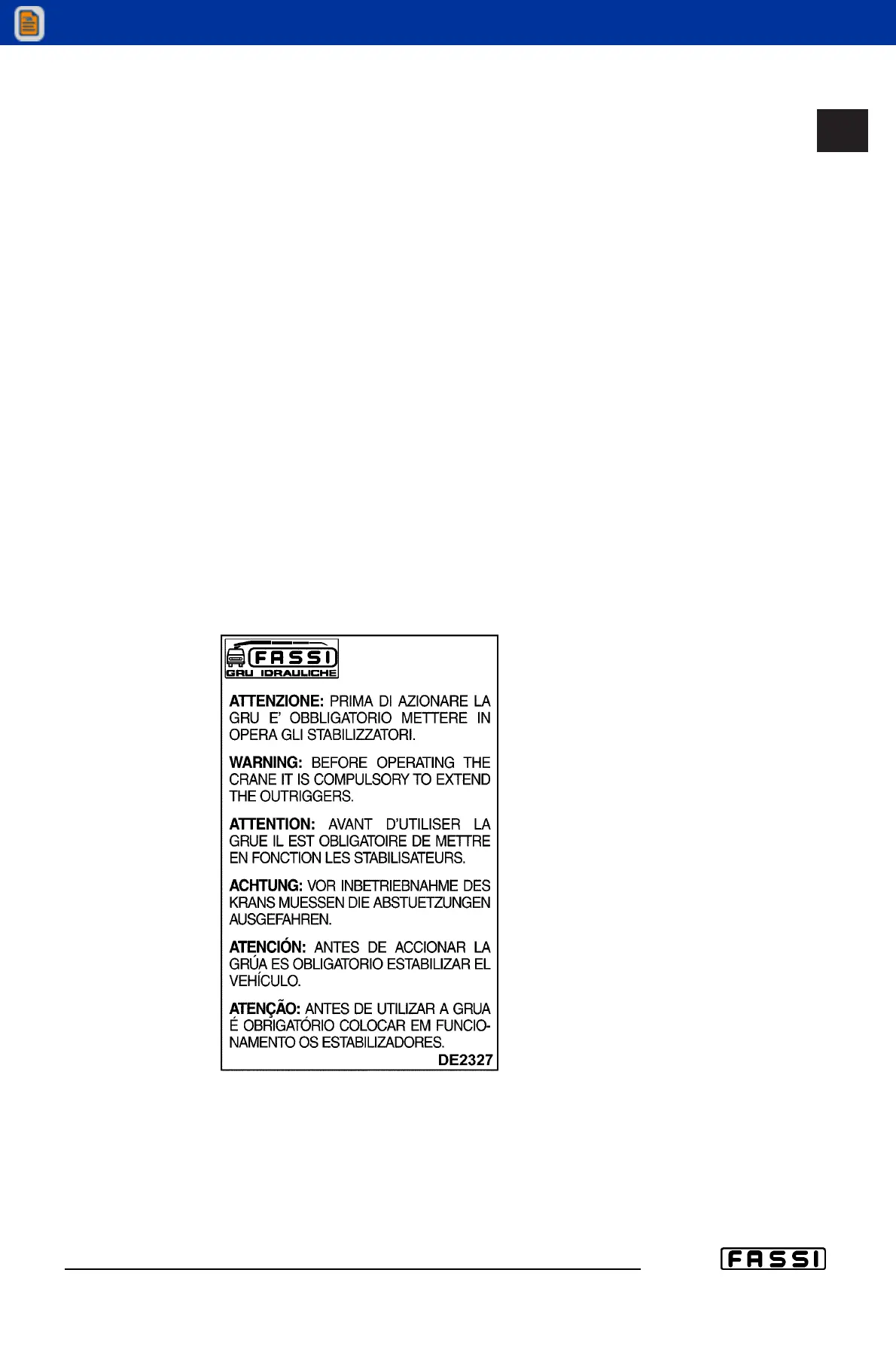 Before operating the crane it is compulsory to set the outriggers. (Plate