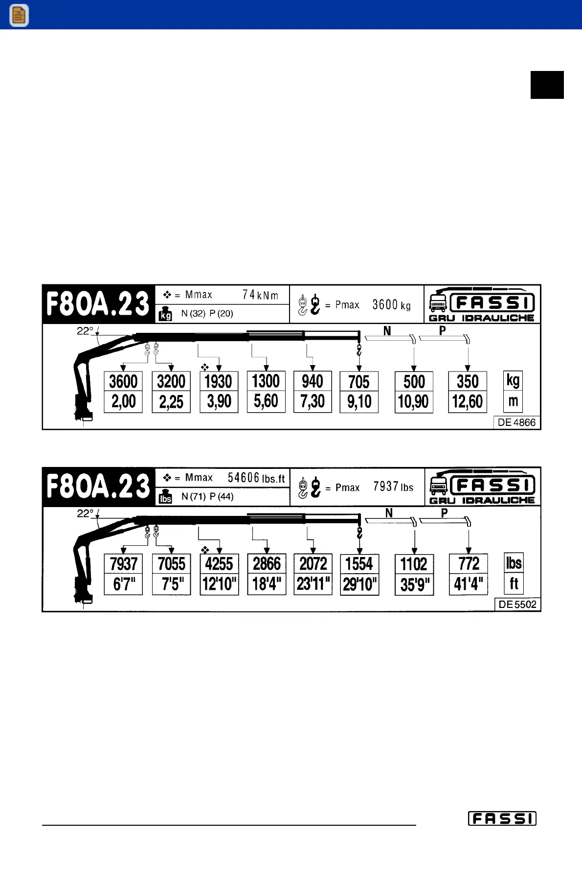 Fassi F 80A.23 - 3 CAPACITY PLATES; 3.1 Generality; 3.1-1 Capacity plates with lifting moment limiting device