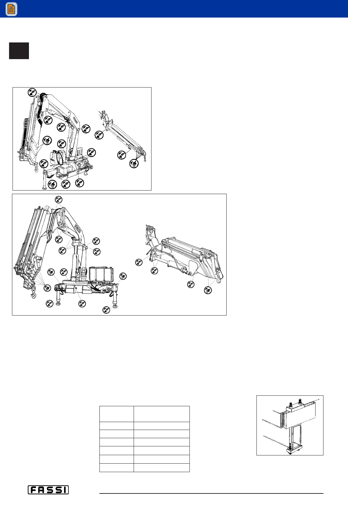 - of the fixing rods of the crane; consult the following table in order to find it’s
