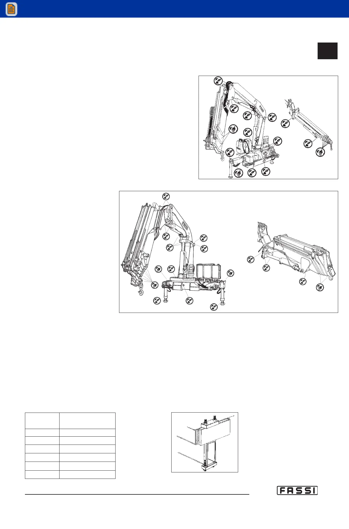 - of the fixing rods of the crane; consult the following table in order to find it’s