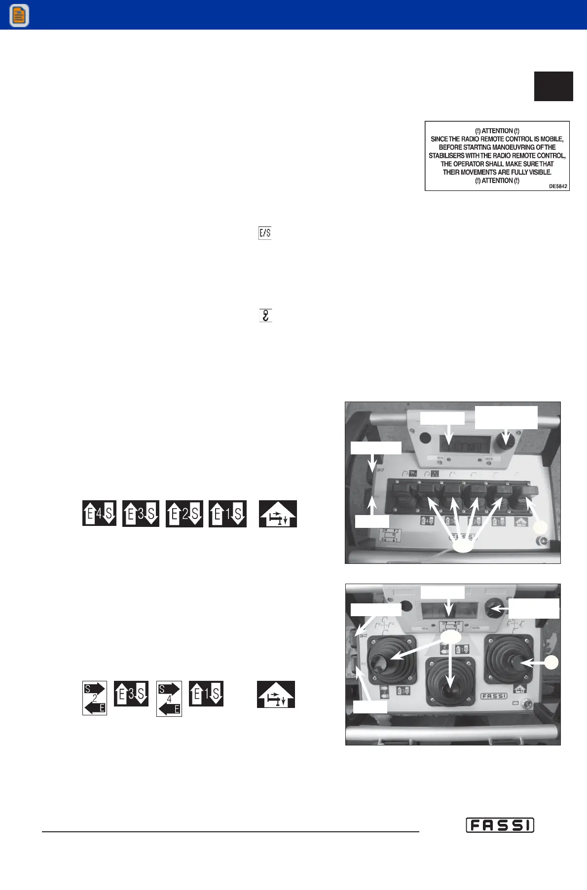 Before starting manoeuvring of the stabilisers with the radio remote control, the