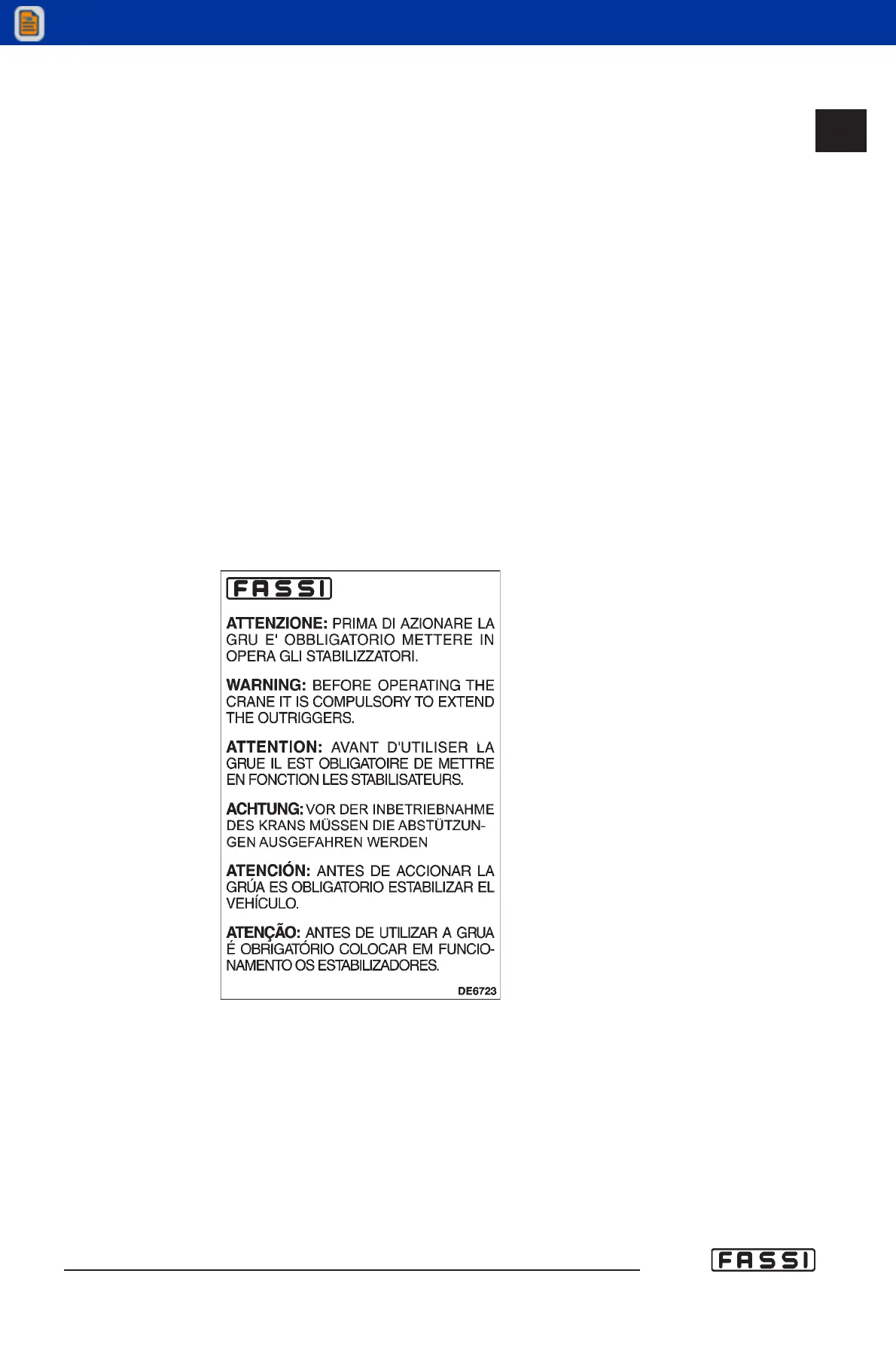 Before operating the crane it is compulsory to set the outriggers (Plate