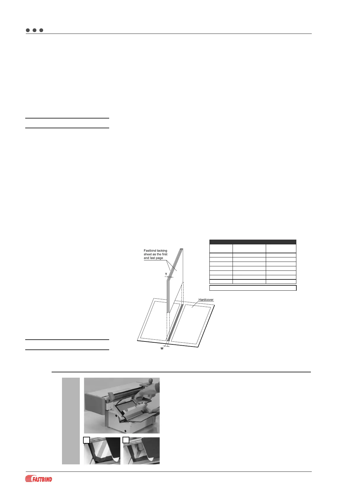 Table applies to FASTBIND supplies only!