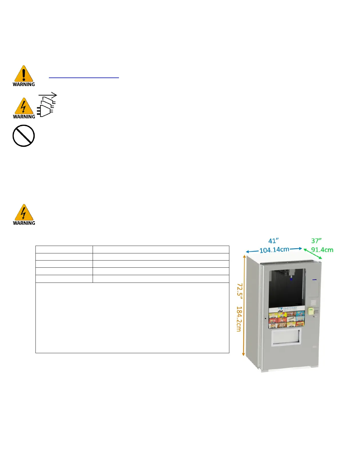 Note: Vendor door can be opened and machine carefully “clamshelled” through a 36” door opening.