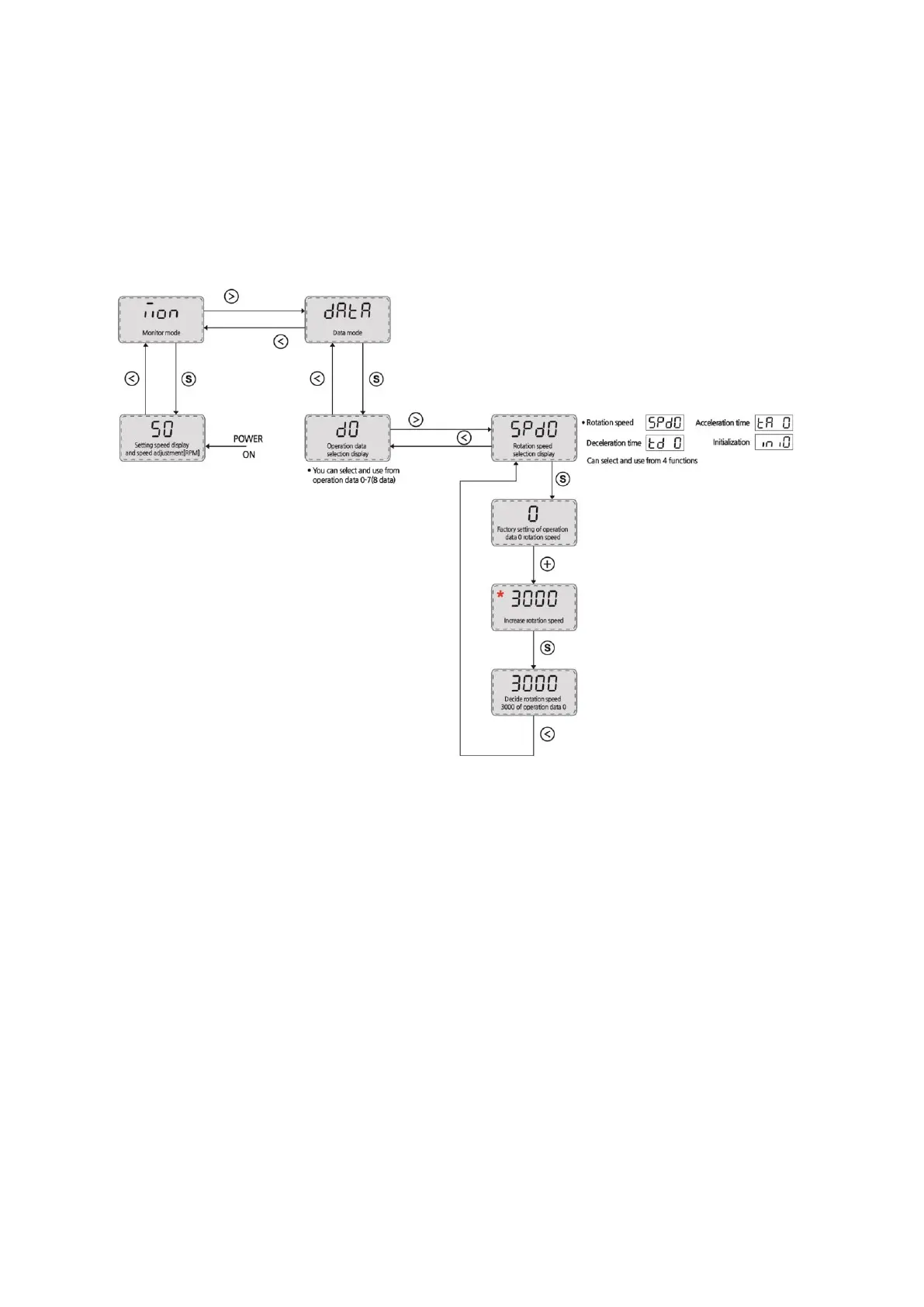 Data setting method [Example : Set the rotation speed to 3000rpm (Change from 0