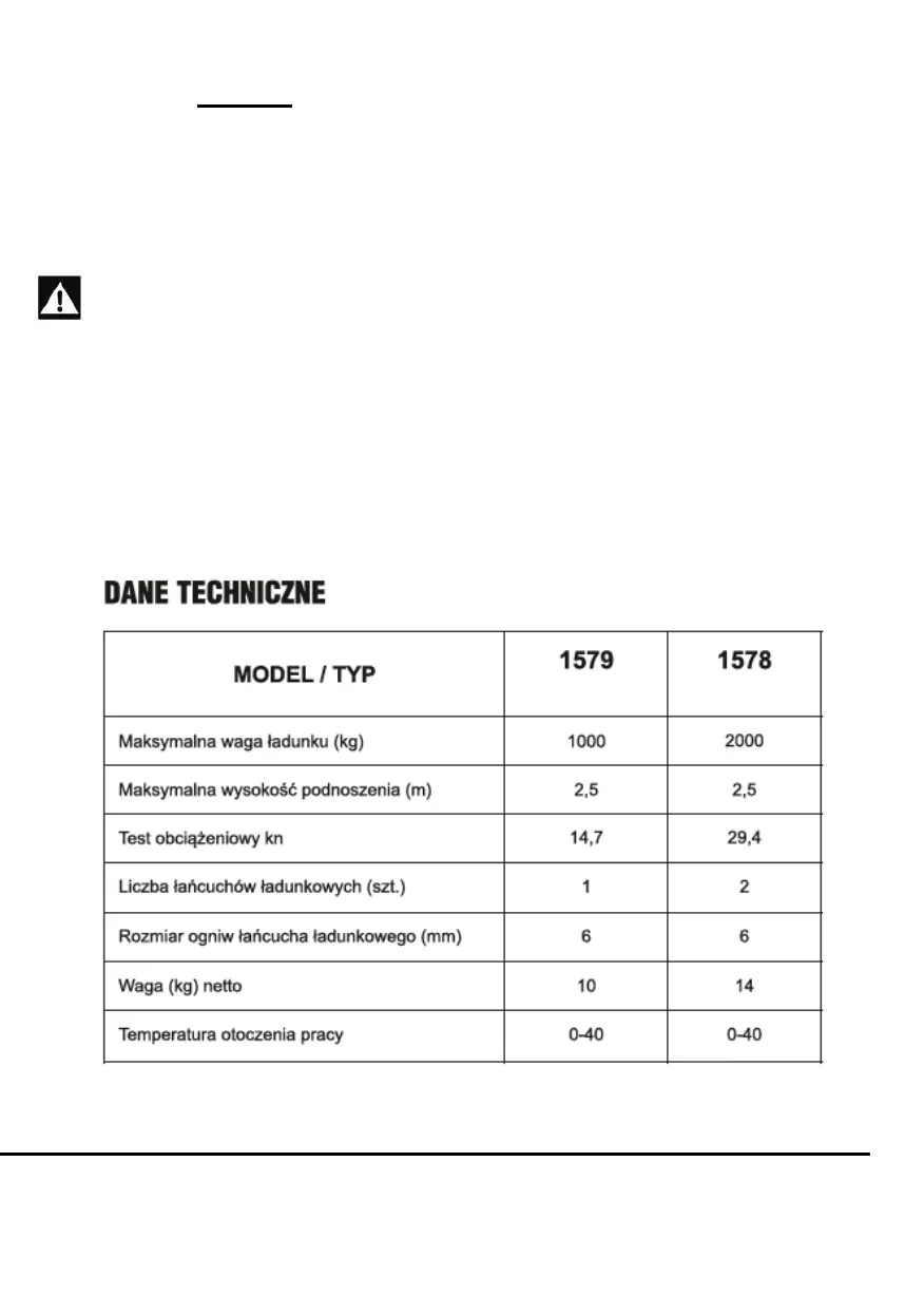 Wyciągarka łańcuchowa jest przeznaczona do podnoszenia ładunków. Nie może być