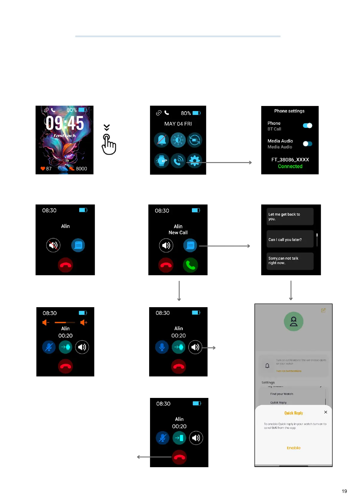 logs, Reject Call, Control Volume, Transfer from Phone to Watch and vice versa