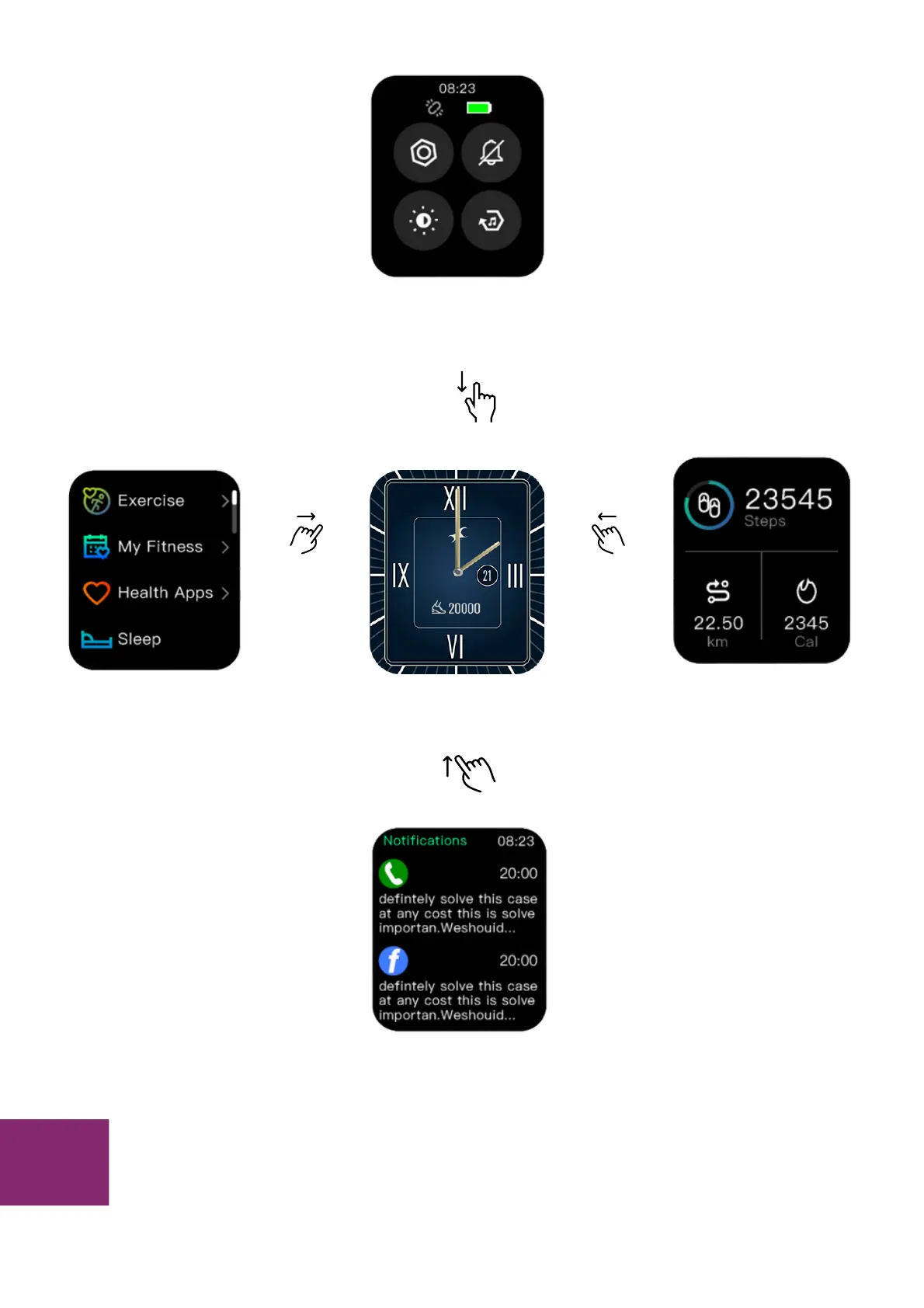 Fastrack REFLEX CURV - Watch Interface Navigation; Home Screen Swipes