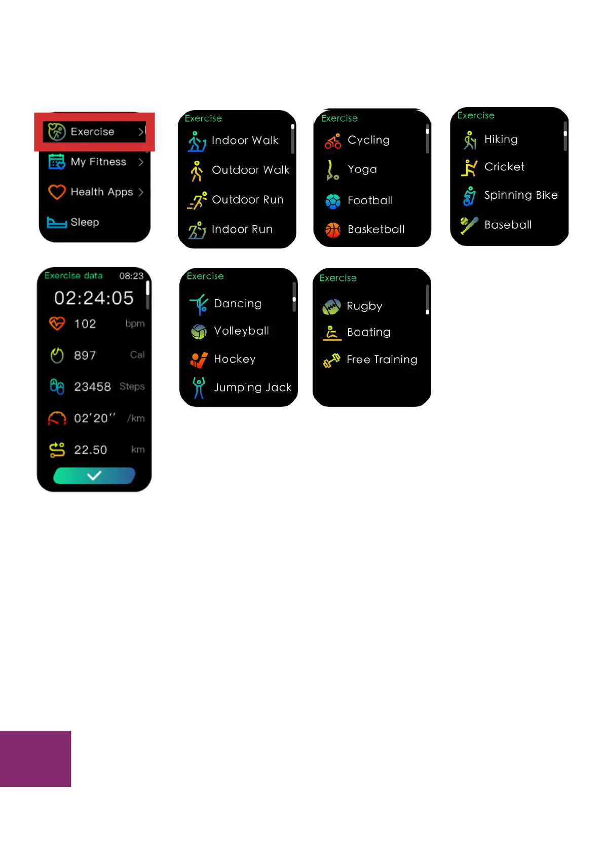 spinning bike, baseball, dancing, volleyball, hockey, jumping