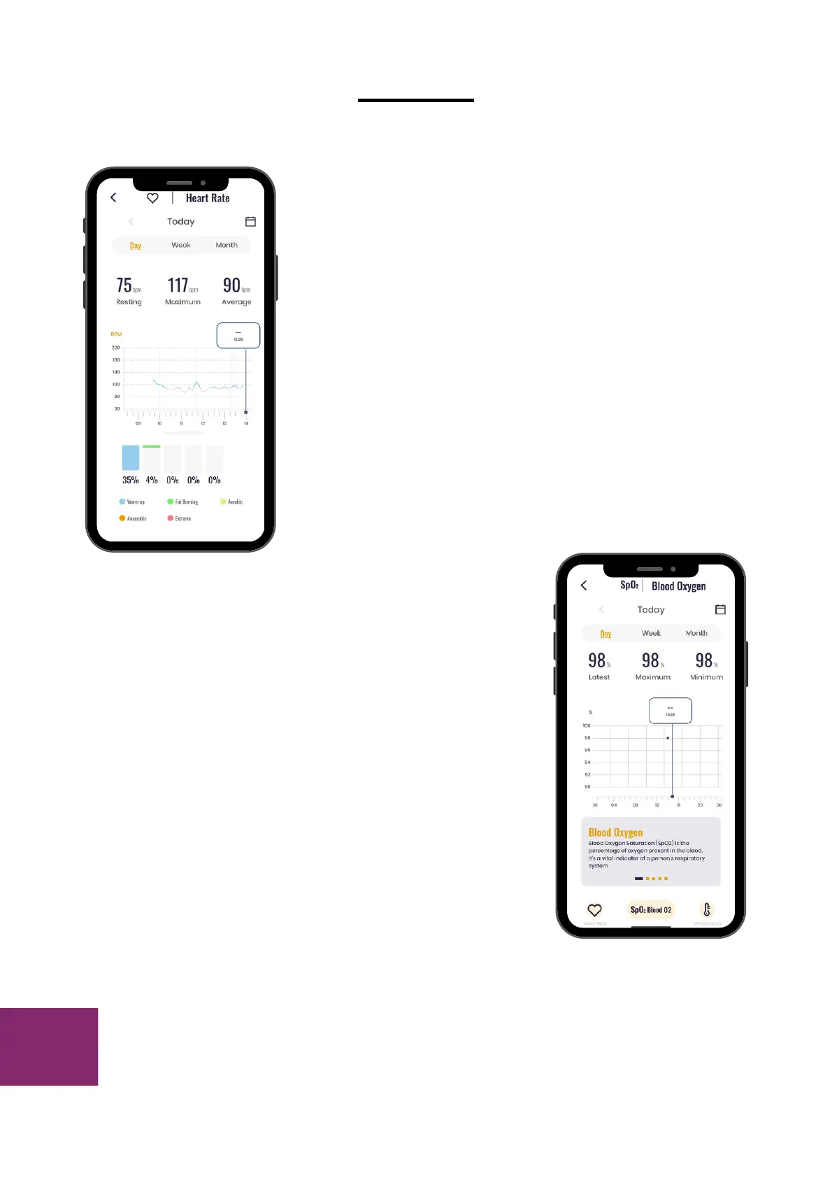 SpO2 levels with a graph and