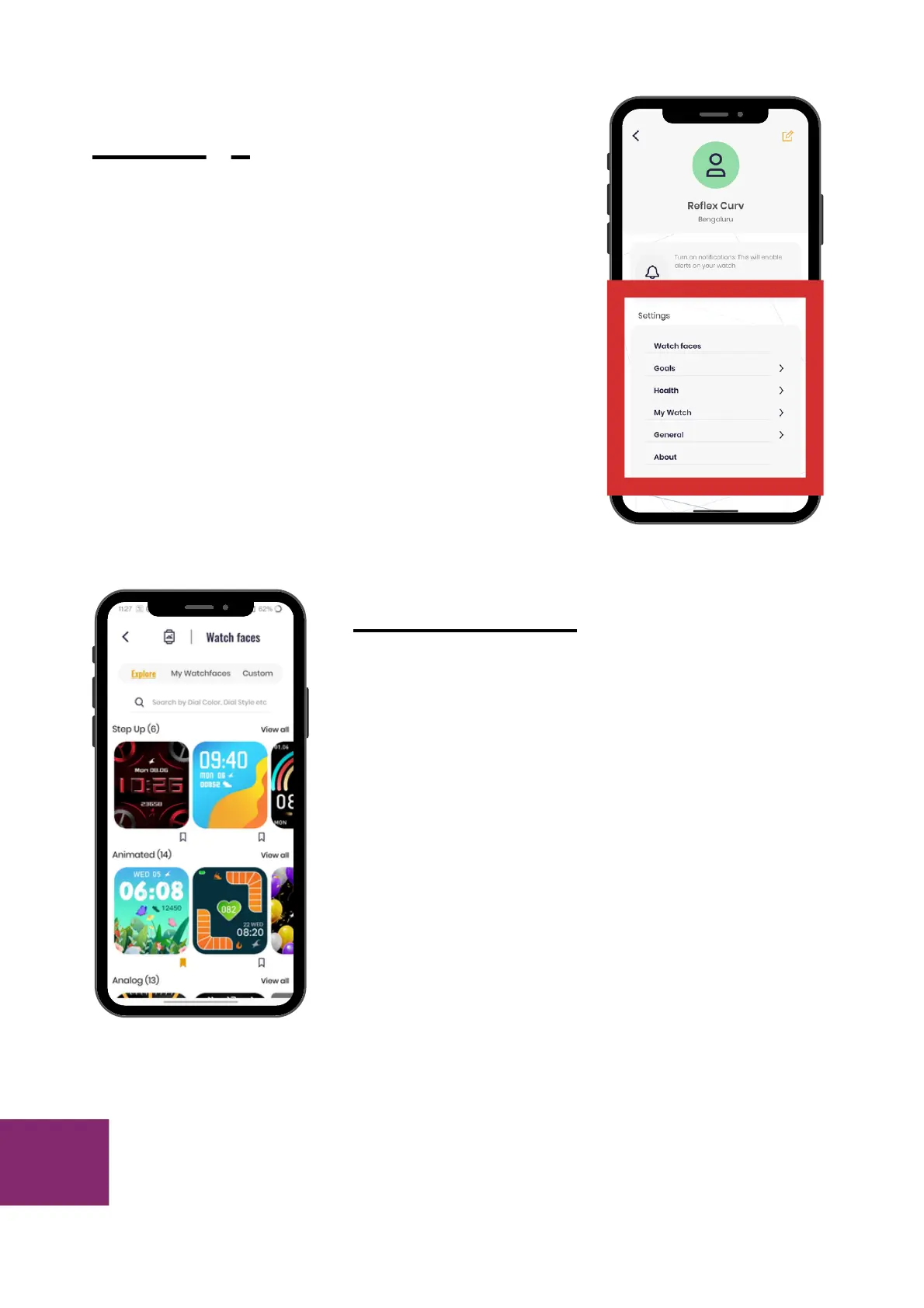 settings on watch faces, goals,