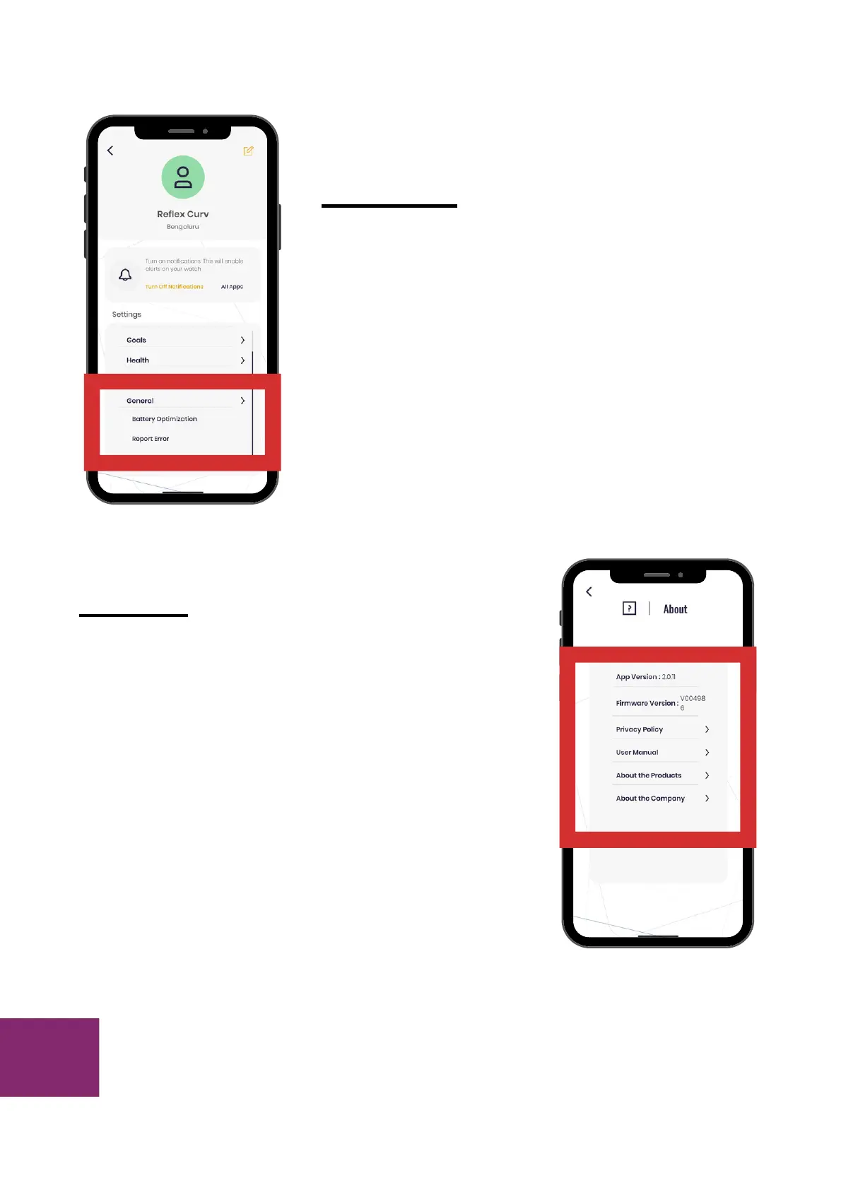 firmware version, privacy policy,