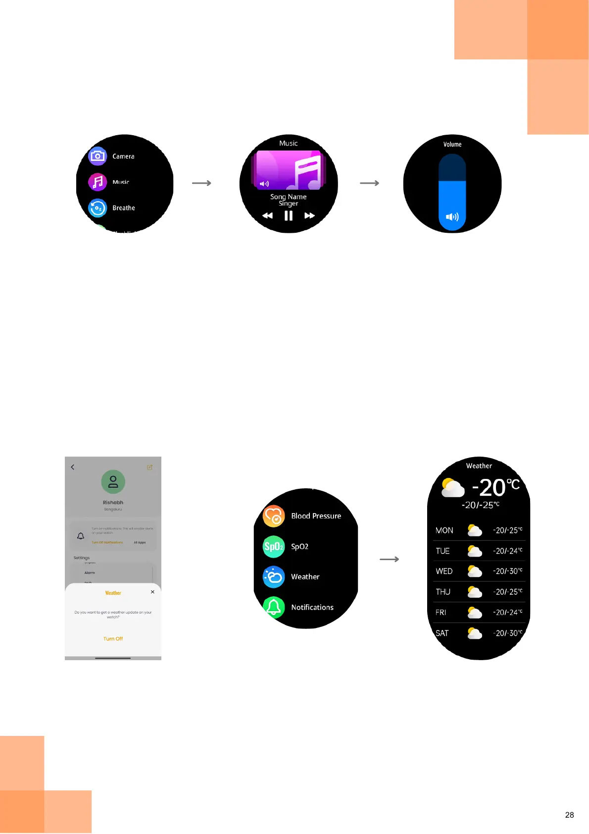 Pause/Play | Next/PreviousTap on "Music" Increase/Decrease volume