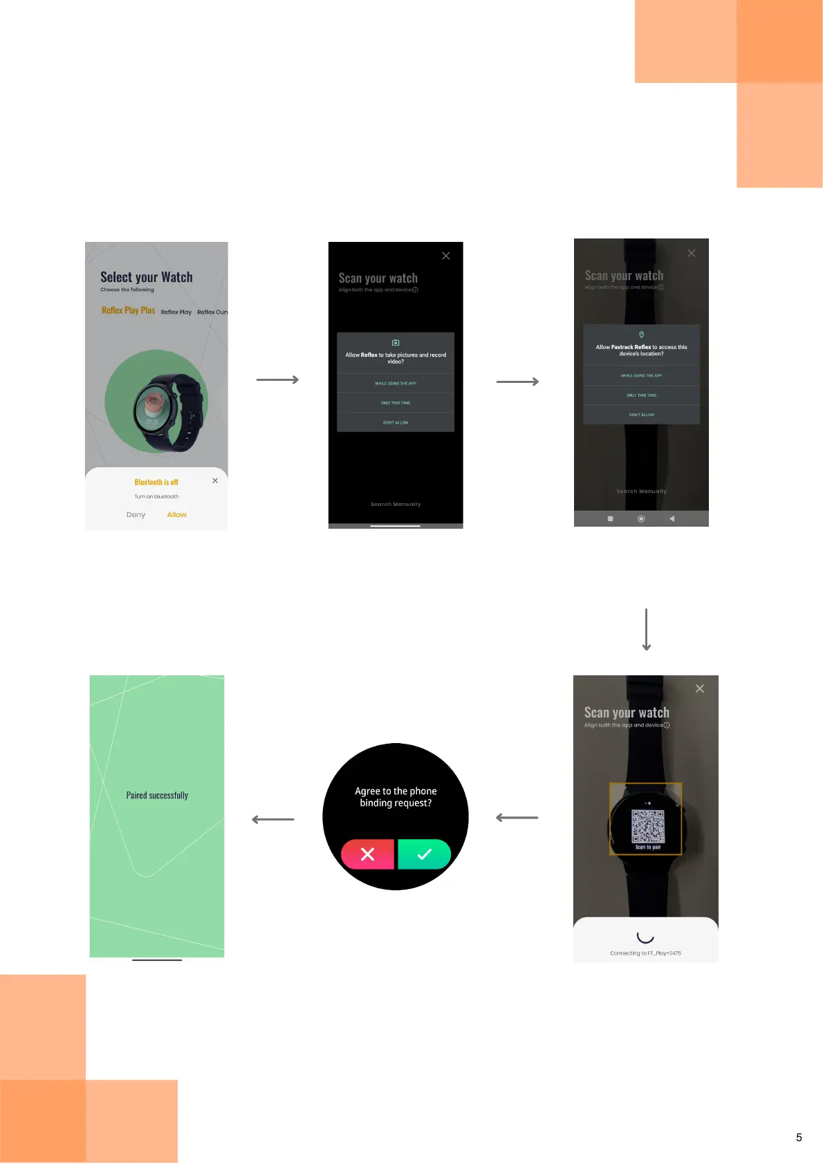 Fastrack Reflex Play Plus - Connecting Reflex Play+ With Your Smartphone; Turn On Bluetooth; Scan and Pair Watch; Accept Pairing Request