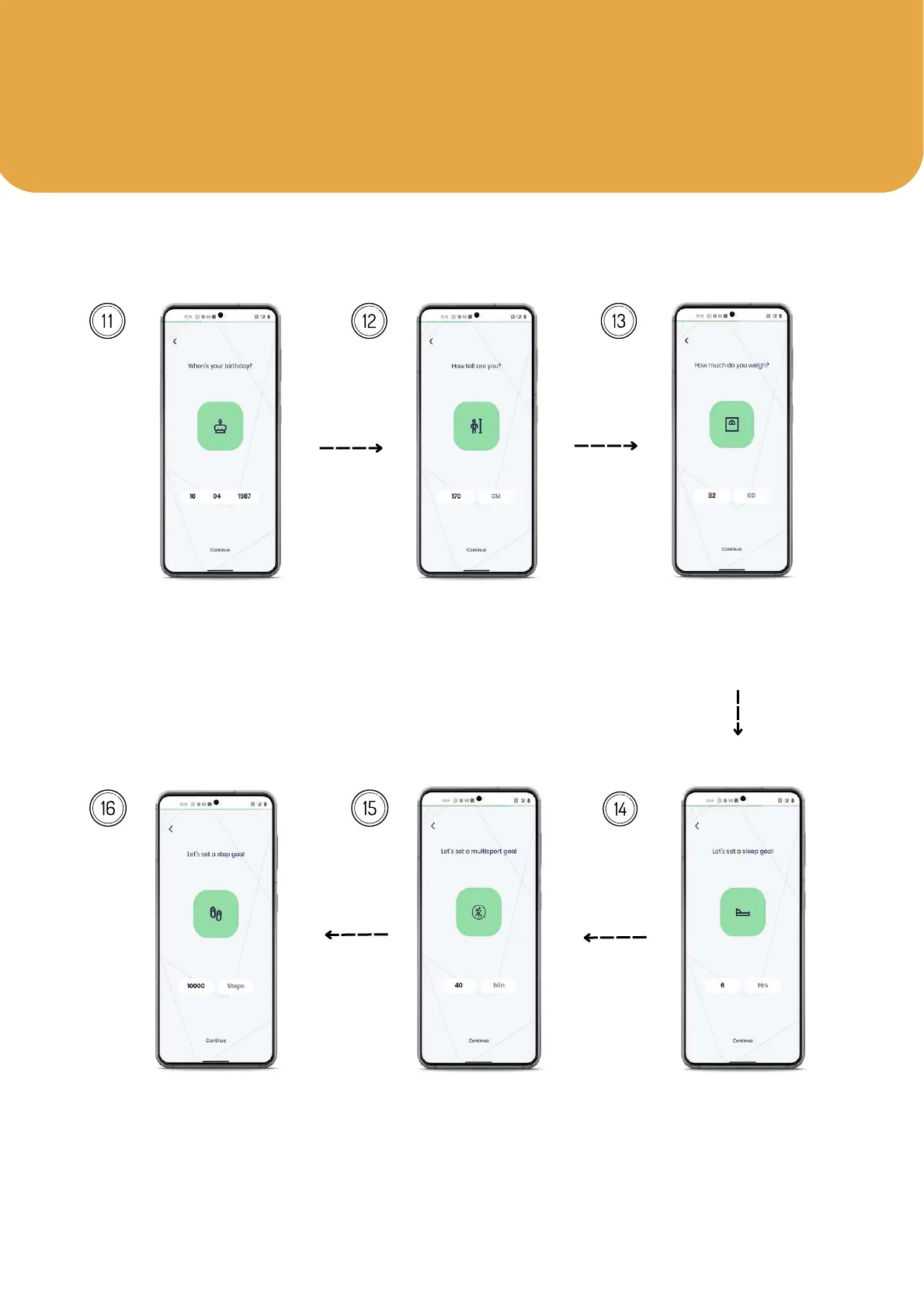 Add your birthday Enter your height Input your weight