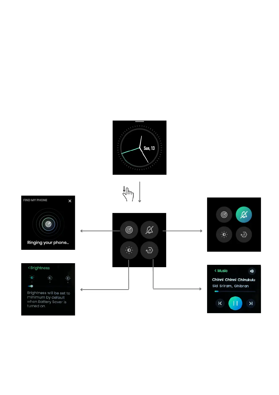 Fastrack Reflex - Swipe Down; Control Center Functions; Brightness Adjustment; Music Playback Control