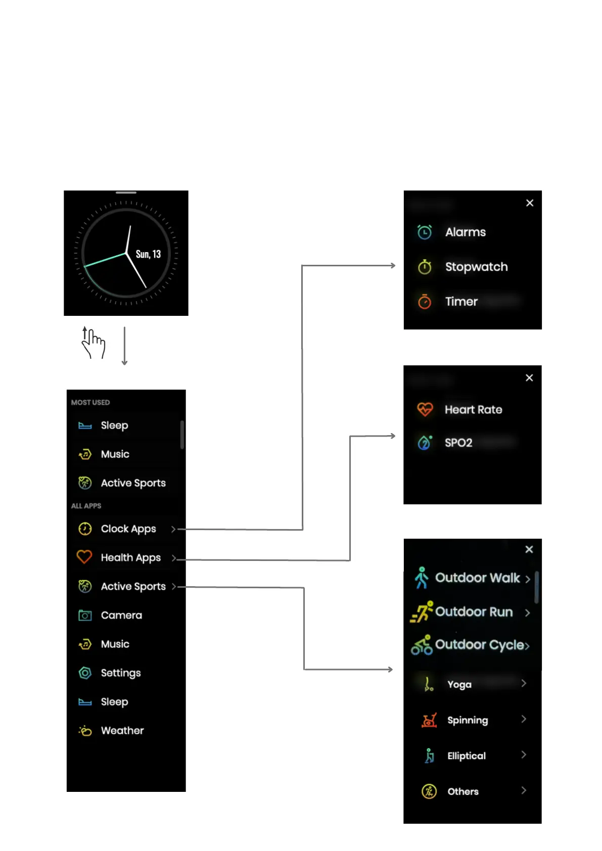 Fastrack Reflex - Swipe Up; Access All Apps Menu; Navigate Through App Categories