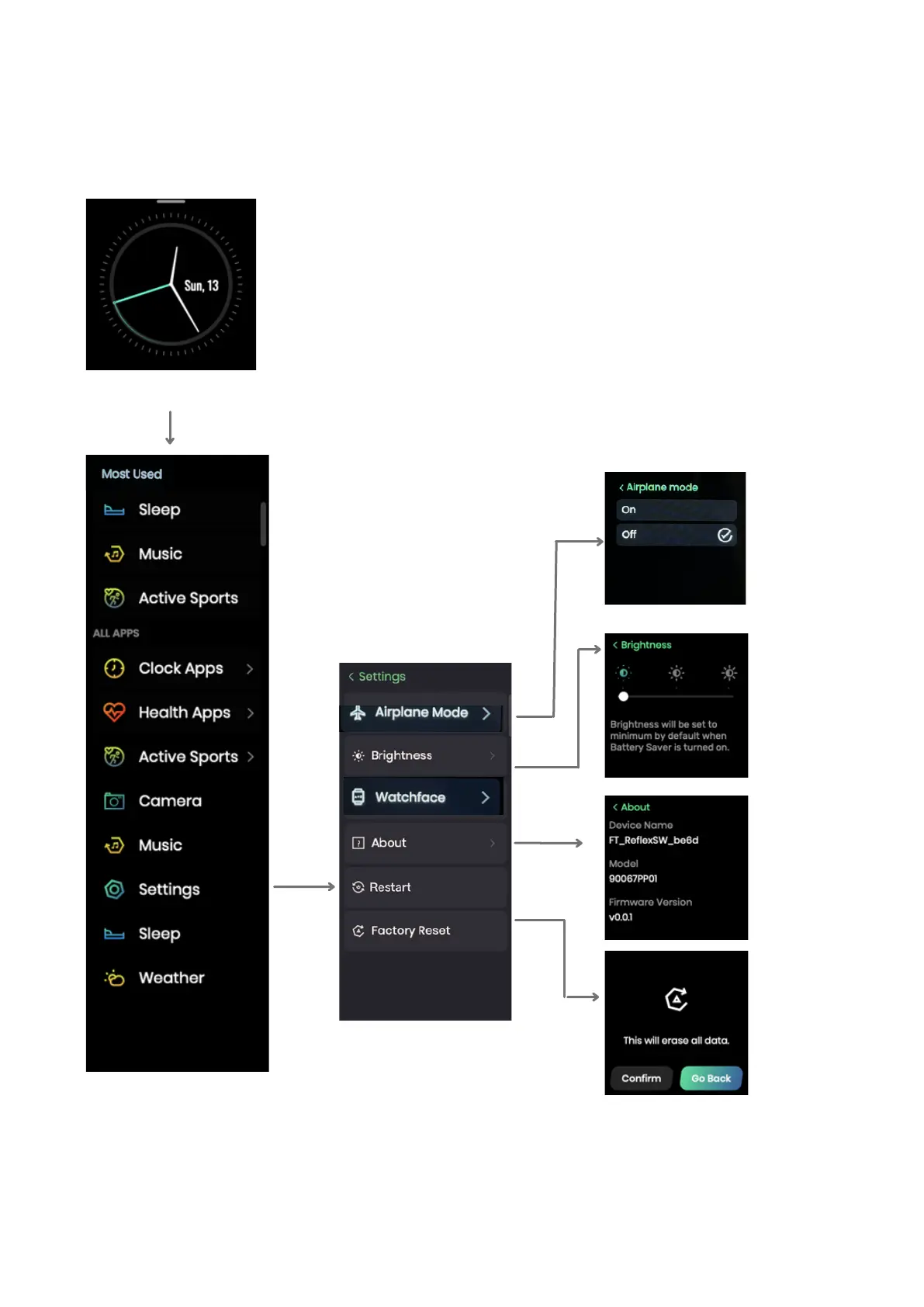 Fastrack Reflex - Watch Settings; Airplane Mode and Brightness; Device Information and Reset