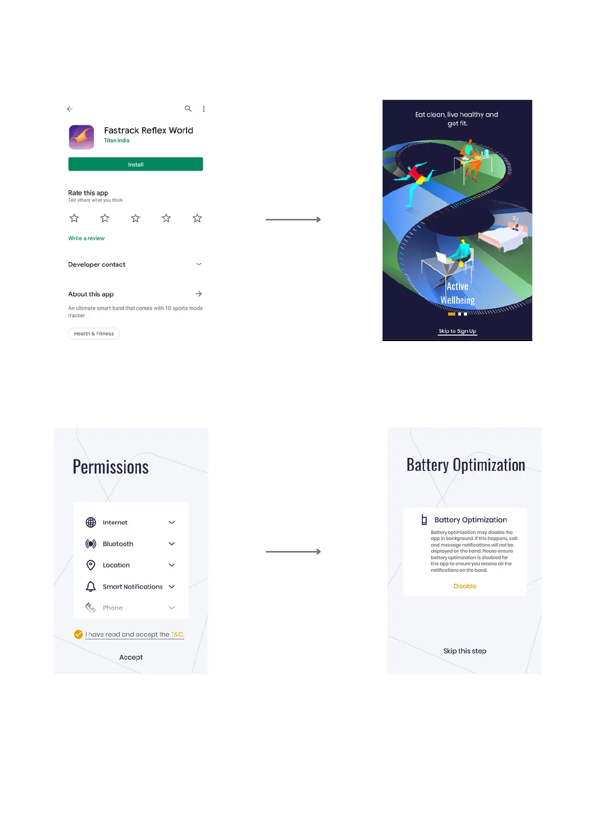 Fastrack Reflex - How to Get Started; Install Fastrack Reflex World App; Grant Permissions and Accept T&C; Manage Battery Optimization
