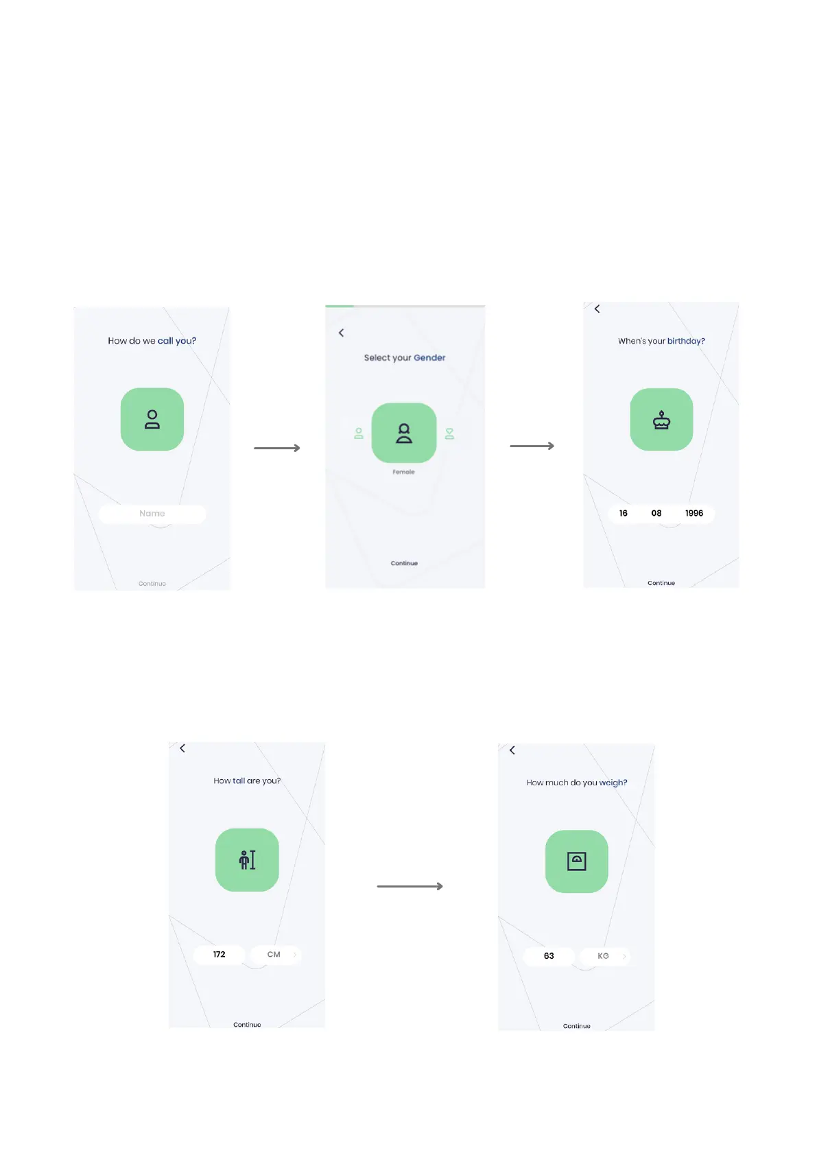 Enter your name, weight, gender, birth date and other related details for profile creation.