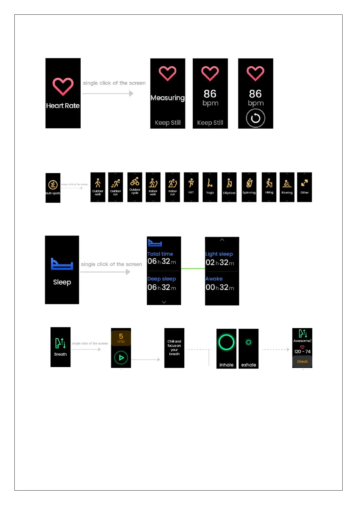 Breath: Breath menu gives you breathing training. Tap Breath and follow the