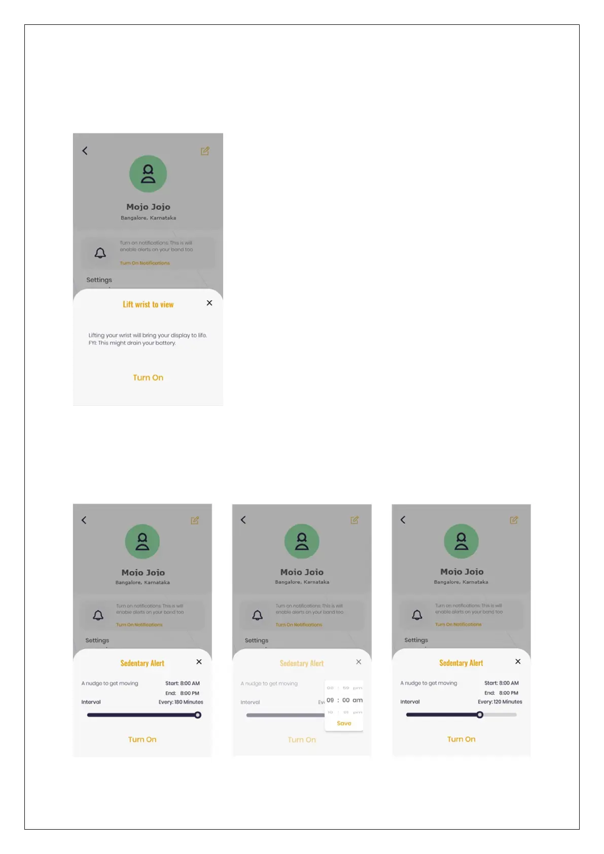 amount of time. Tap Sedentary Alert, set a start time and end time between